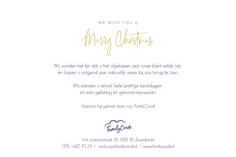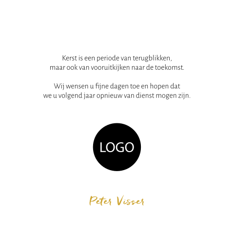 Zakelijke kerstkaart met tekst en gouden kerstboom